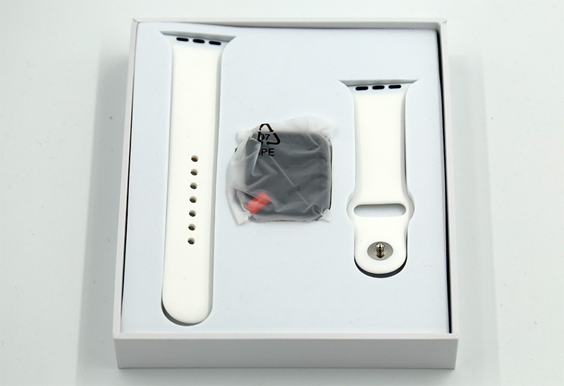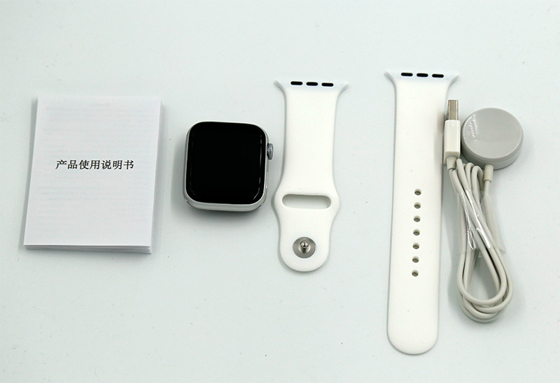 Комплект поставки: часы, ремешок, беспроводной крэдл для зарядки (да-да, зарядка тут реально беспроводная), инструкция "Как не спутать эти часы с Apple Watch" на китайском.