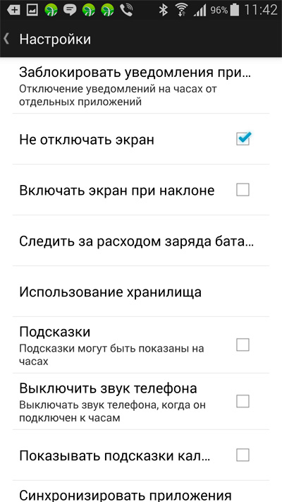 Кстати, даже при включенной настройке "Не отключать экран", если часами не пользоваться какое-то продолжительное время (например, часы просто лежат на столе), экран отключается полностью. Что, в общем-то, правильно - батарея экономится.