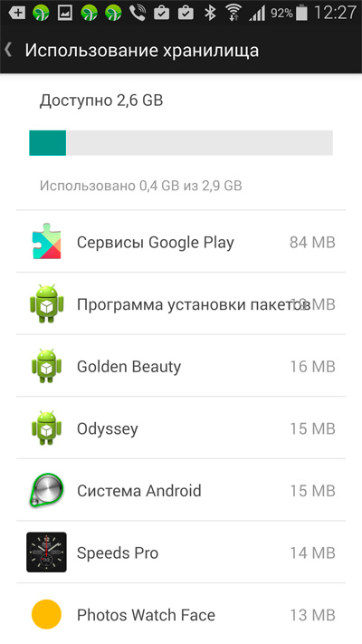 Из 4 Гб для пользователя доступны 2,9 Гб. Этого более чем достаточно: у меня при всех установленных приложениях и скинах свободно 2,6 Гб.