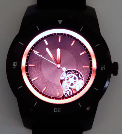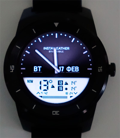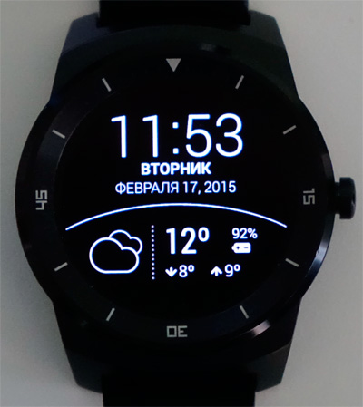 На солнце экран LG G Watch R заметно "слепнет", и даже ручной перевод в режим максимальной яркости мало что добавляет. Впрочем, время разглядеть все-таки можно, так что я не считаю это уж очень большим недостатком. (Кстати, обозреватели пишут, что у Moto 360 с этим делом заметно лучше. Но я эти часы скоро сам буду тестировать - интересно.)