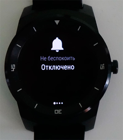Напомню только кратко, что если смахнуть циферблат вниз - появятся быстрые настройки: не беспокоить, театральный режим (выключенный дисплей), включение максимальной яркости и переход в общие настройки.