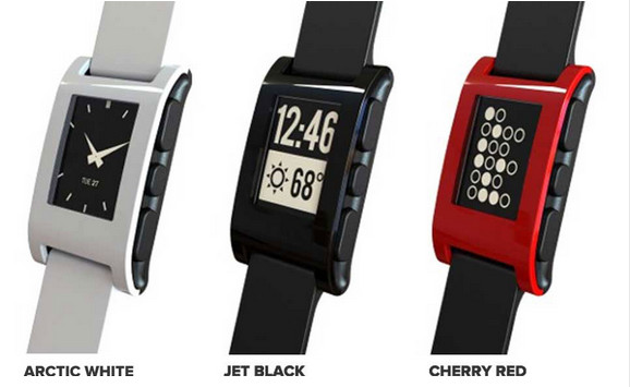 Итак - очередные умные часы, которые называются Pebble. Компания пока выпускает только одну модель, но в разных цветах: белый, черный и красный.