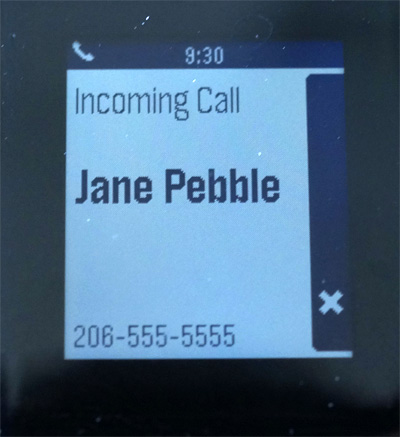 Входящий звонок: имя, телефон. Можно снять трубку (удобно при использовании гарнитуры), отклонить звонок.