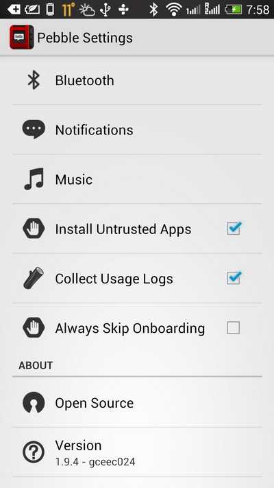 Настройку часов лучше начать с установки приложения Pebble под Android или iOS. Выглядит приложение следующим образом.