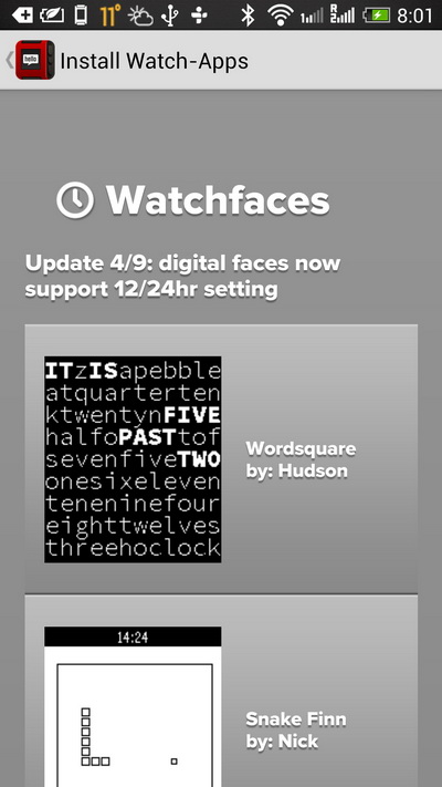 В отличие от Sony SmartWatch, если часы теряют смартфон или у них выключен Bluetooth, они просто показывают время и дату. (Впрочем, говорят, что в последних прошивках Sony SmartWatch этот глюк починили.) Ну и на них при этом, разумеется, можно менять скины часов.