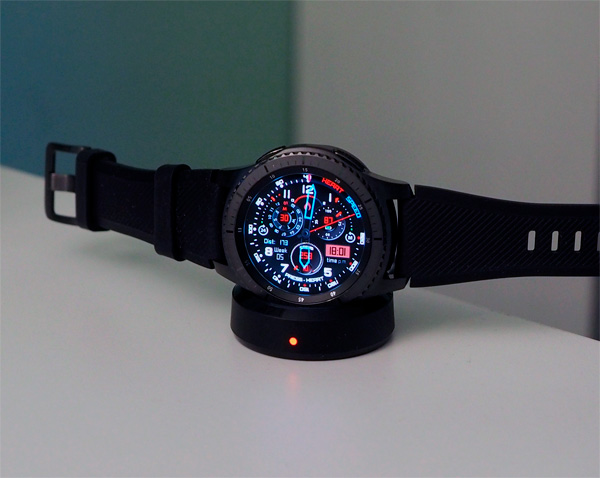 Если сравнивать характеристики с теми же Huawei Watch, которые у меня умничали в качестве часов до появления Gear S3, то тут получше процессор, больше оперативной памяти, есть NFC и системы определения координат, а также выше классом пыле- и влагозащита (погружение под воду на тридцать минут на глубину не более полутора метров).