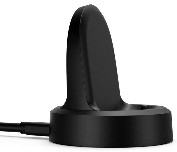 В крэдле часы заряжаются методом электромагнитной индукции, то есть их нужно просто установить на подставку крэдла, причем хоть так, как на снимке, хоть вверх ногами. (От обычной беспроводной зарядки часы не заряжаются.) При зарядке сначала появляется соответствующий виджет, затем выводится циферблат. Что интересно, изображение при этом поворачивается на 90 градусов - это очень удобно.