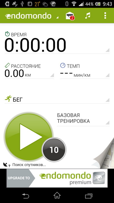 Запуск Endomondo. В общем, работает - считает пройденное расстояние и скорость. Но шаги не считает, к сожалению.