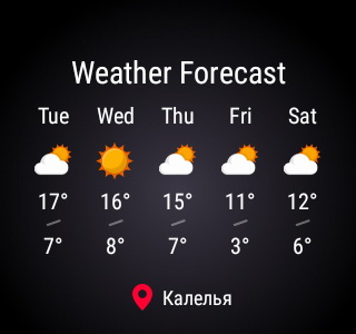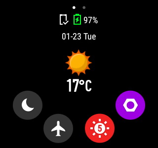 Следующий экран - основной десктоп, то есть циферблат. За ним - погода.