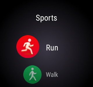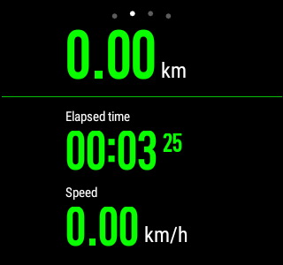 Жесты на основном экране влево и вправо - вызов основных экранов. Самый левый - запуск тренировки в различных видах спорта.