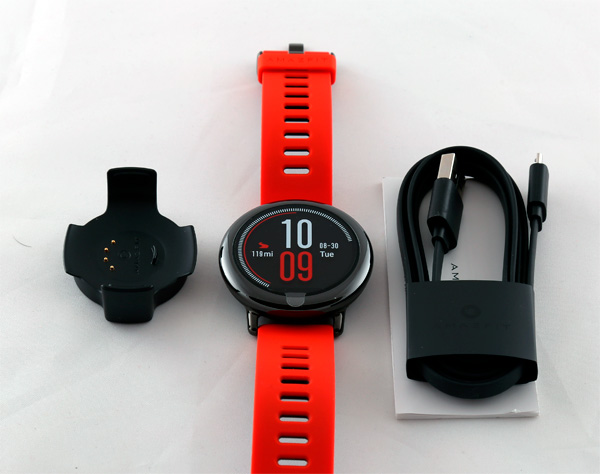Комплект поставки: часы, крэдл для зарядки, кабель USB - microUSB, брошюрка.