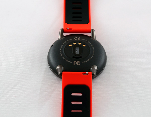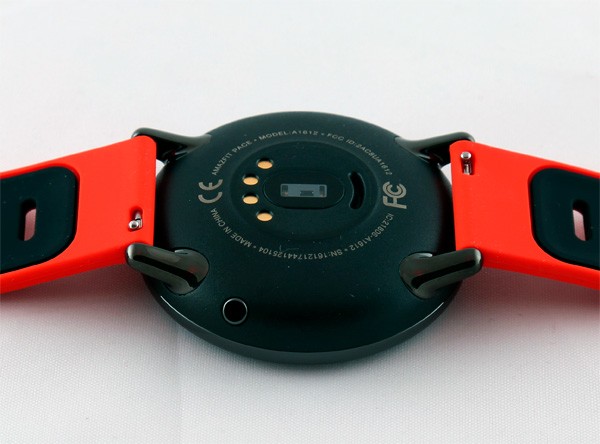 На задней поверхности - контактная группа для зарядки и датчик пульса.