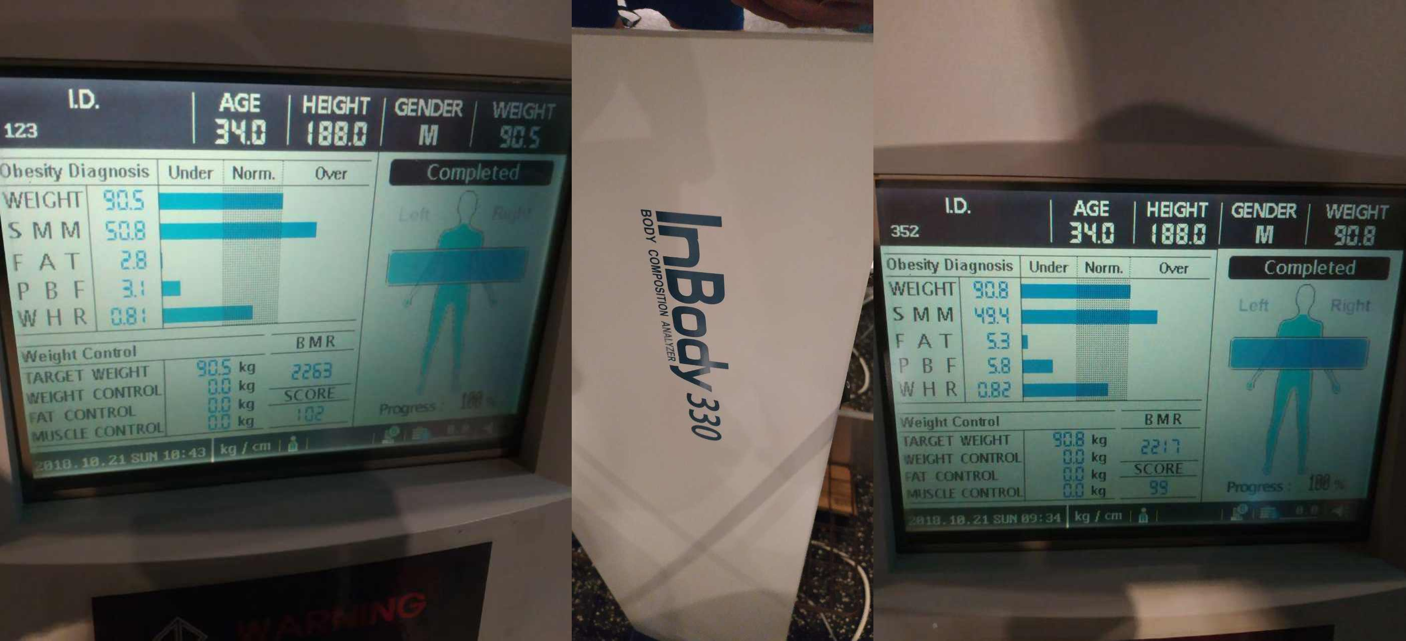 В потверждение по Inbody прикладываю скрины. Это два соседних утра в одно и то же время примерно, до завтрака.