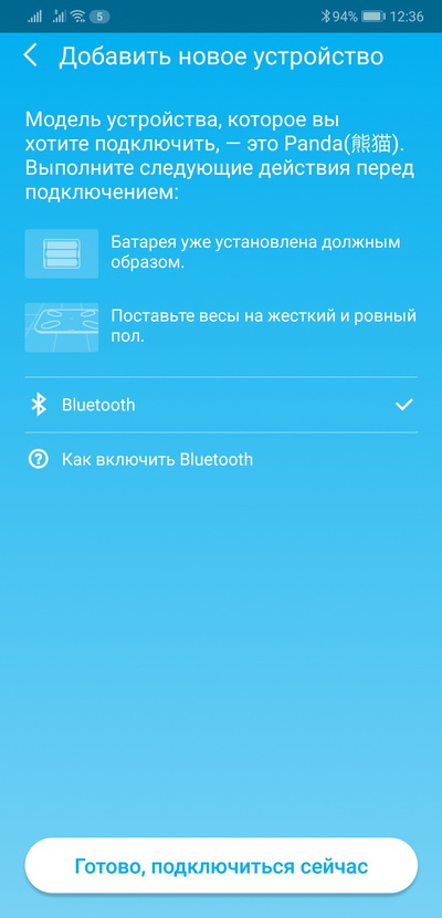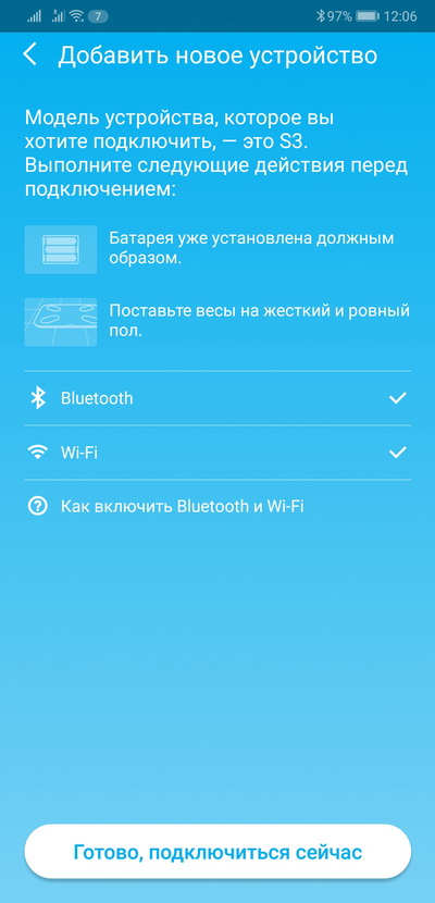Подключение производится точно так же, только среди доступных вариантов подключения нет Wi-Fi - эти весы работают только по Bluetooth.