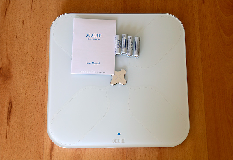 В комплекте: весы, инструкция, набор фирменных батареек Picooc.