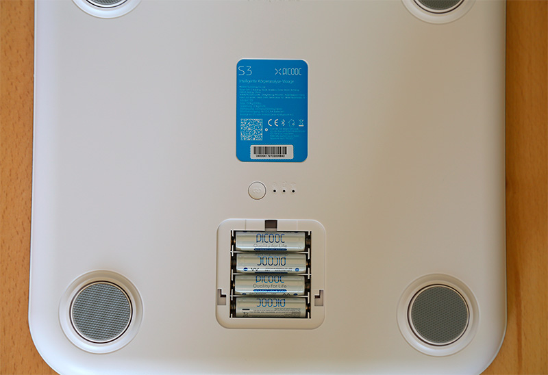 Батарейки вставляются в соответствующий отсек на нижней части весов, снизу есть четыре резиновые ножки, благодаря которым весы устойчиво стоят на полу.