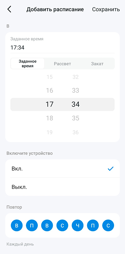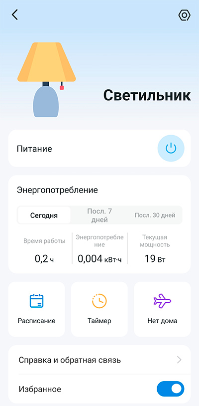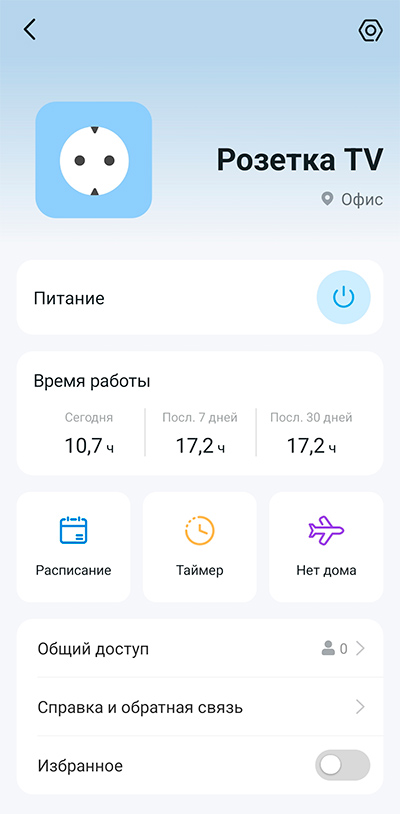 В любое устройство можно зайти: там информация о времени работы, об энергопотреблении и мощности (если поддерживается - см. второй скриншот), можно задать расписание, таймер, режим "Нет дома").