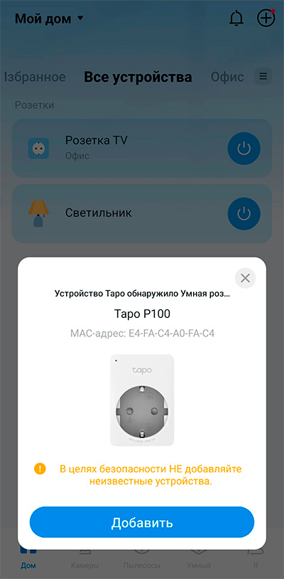Включил еще одну розетку - приложение ее тут же обнаружило и предложило подключить.