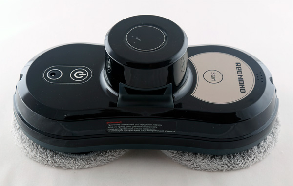 После этого робот прикладывается к стеклу в левом или правом верхнем углу, нажимается кнопка включения - и робот надежно прилипает к поверхности.