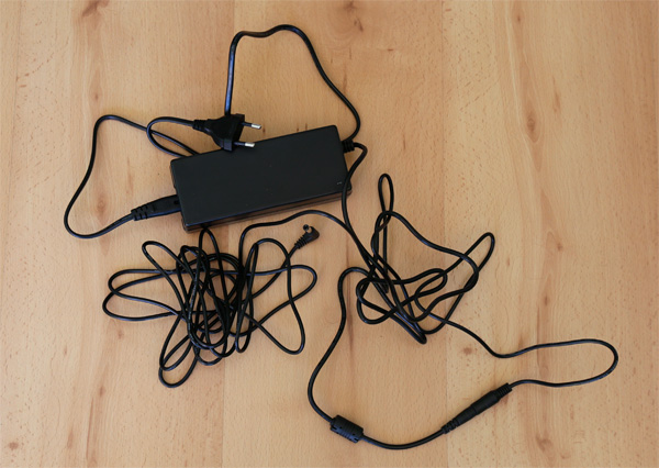 Робот питается от розетки, поэтому к двухметровому шнуру адаптера идет еще удлинитель на четыре метра, чтобы робот мог обрабатывать здоровенные витрины.