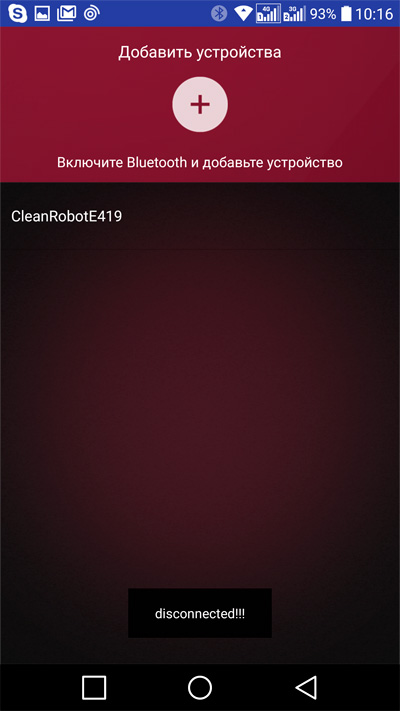 Для сопряжения с роботом нужно включить устройство и нажать в приложении "Добавить устройство" - робот появляется в списке.