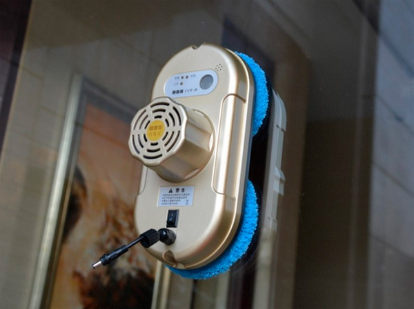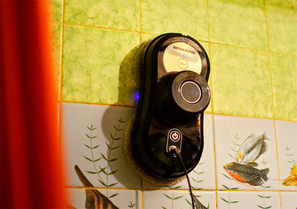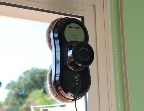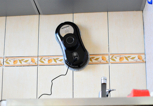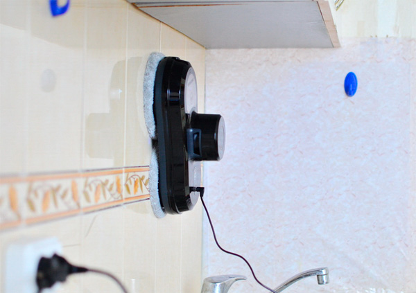 Особенно удобно использовать такого робота-мойщика для очистки внешней стороны стекла: вручную это делать и неудобно, и может быть опасно. При этом, конечно, абсолютно необходимо прикрепить к роботу страховочный трос и надежно закрепить другой конец троса - например, на батарее.