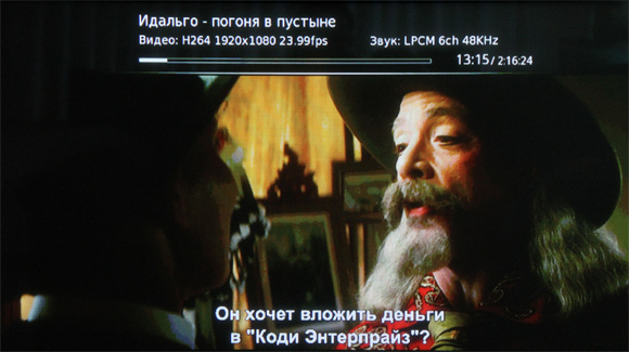 И тут плеер напомнил WD TV Live, у которого с навигацией тоже все очень скромно. Iomega ScreenPlay ведет себя примерно так же: обычная ускоренная перемотка, скачки на 10 секунд по стрелкам влево-вправо, ну и все. Никакой тебе навигации с помощью временного индикатора, никаких тебе скачков на нужную временную позицию.