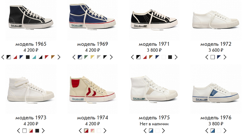На сайте "Два мяча" представлено несколько десятков моделей самых разных лет. И каждая из них доступна в нескольких вариантах цветовой раскраски.