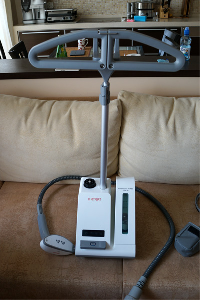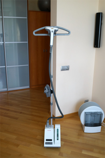 Я раньше слышал об отпаривателях, но вблизи их никогда не видел. А вот как раз с утюгами у меня отношения как-то не складываются: я гладить не умею и не люблю. Компания Philips мне как-то привозила утюг с парогенератором (я его работу наблюдал на выставке), но написать о нем я так и не сподобился. Штука, конечно, интересная и гладит действительно шикарно, но нам это устройство не подошло из соображений безопасности: когда после глажки на доске остается стоять здоровая бандура с кипящей водой, которую толком деть некуда, пока она не остынет, а у вас дома маленький ребенок - это как-то выглядит не очень безопасно.