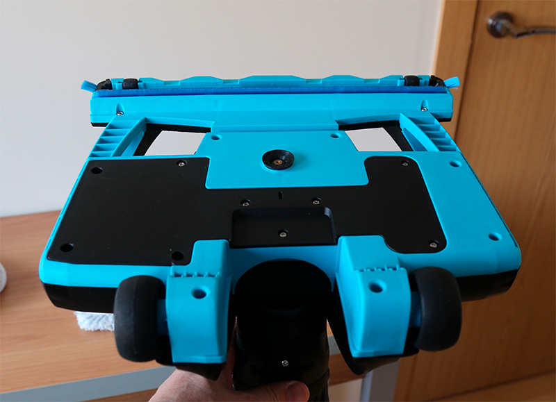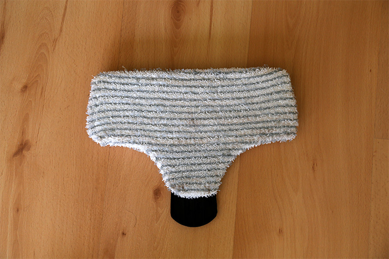 Для влажной уборки на нижнюю часть надевается пластиковая насадка с тряпкой. Сразу открою страшную тайну - пылесос для надевания насадки совершенно необязательно переворачивать. Достаточно просто положить насадку на пол и легонько припечатать ее пылесосом - она защелкнется. А для того чтобы снять насадку, нужно просто нажать соответствующую педальку.