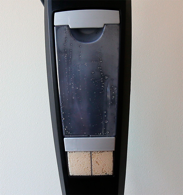 Пылесос очень легко привести в боевое состояние в случае неожиданного обнаружения загрязнения или просто ощущения в себе порыва как следует все пропылесосить. Для этого достаточно снять емкость (она снимается и ставится очень легко), налить в нее воду и поставить обратно. Да, ну и пылесос, конечно, придется подключить к розетке этим длинным, волнующе изгибающимся шнуром.