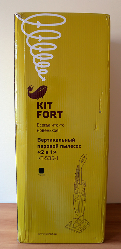 Картонная коробка традиционно веселенькой раскраски. На ней изображен сам пылесос, дано его название, лозунг "Всегда что-то новенькое" и кит, который FORT, что изображается трогательной белой спиралькой, которая означает что-то очень волнующее, к пылесосам зовущее. Либо же эта спиралька - портал в другие измерения, но тут не очень понятно, понадобится ли нам в другом измерении пылесос. Впрочем, черт его знает, может, это другое измерение сильно запущено, правильно?