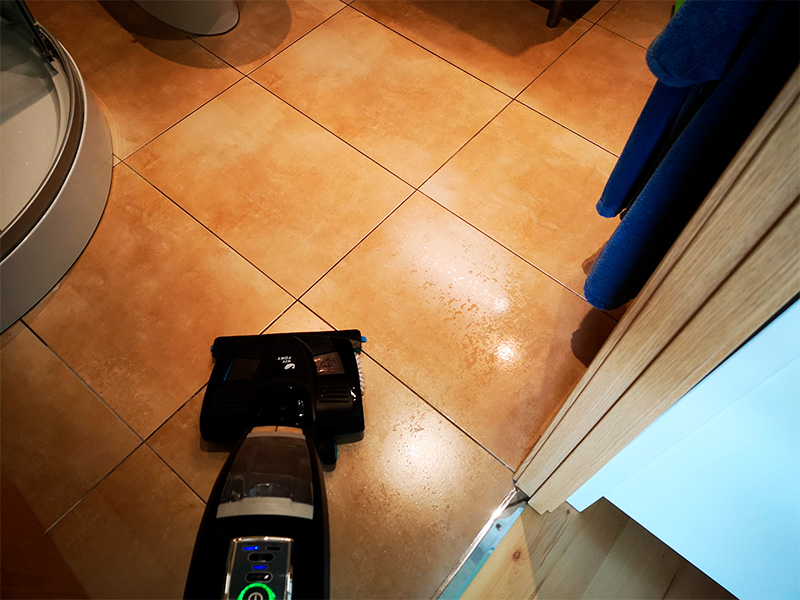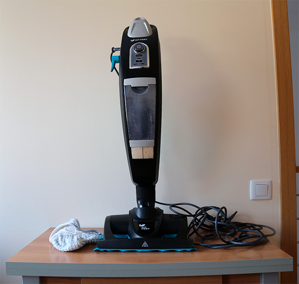 После обработки остается влажный след, который высыхает где-то за 3-5 минут. Засохшие загрязнения парогенератор отчищает заметно лучше, чем пассивный увлажнитель моего пылесоса Philips PowerPro Aqua FC6401 (там просто вода подается на насадку с тряпкой).