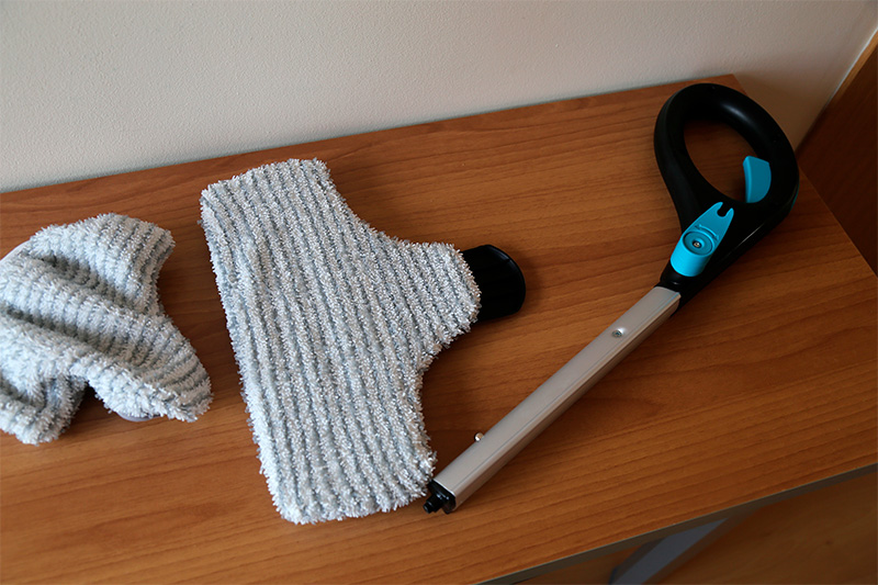 Впрочем, все, что нужно для работы, тут есть - вот держатель для тряпки (мягкая, нежная, но в то же время эффективная микрофибра), запасная тряпка и ручка.