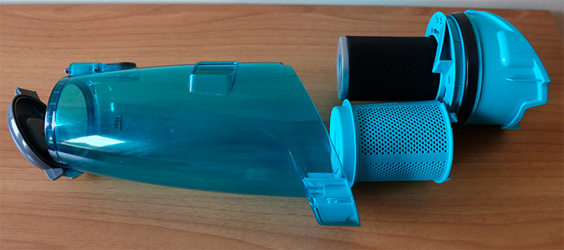 Пылеприемник легко достается, вытряхивается и споласкивается при необходимости. Фильтр там также можно снять и помыть.