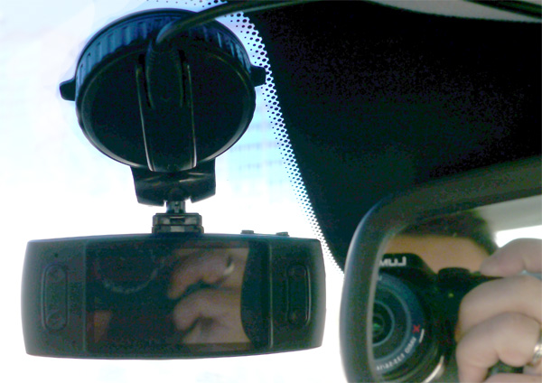 Но такая форма, на мой взгляд, даже удобнее: если закреплять видеорегистратор прямо под верхней затемненной частью лобового стекла, то его снаружи становится практически не видно.