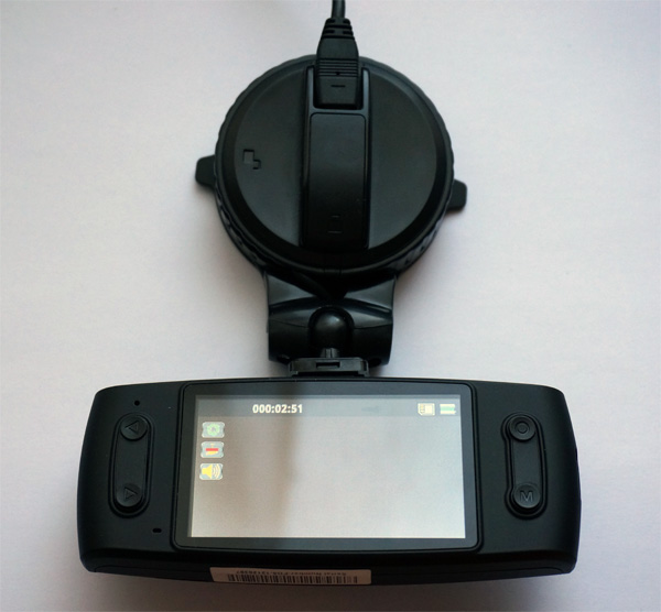 Подача питания через кронштейн - это отличная идея. У большинства видеорегистраторов встроенного аккумулятора хватает максимум на полчаса записи, а обычно и заметно меньше. (Здесь - порядка 20 минут.) Если видеорегистратор закреплен не стационарно, то можно умучиться каждый раз подключать к нему питание, а потом отключать. В данном же случае аппарат просто вешается на кронштейн - и питание подведено. Это классно.
