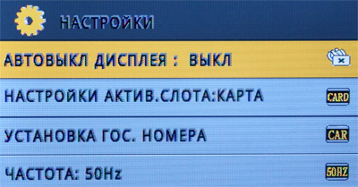 Настройки активного слота - переключение между записью с карты памяти на встроенную память видеорегистратора. Мы помним, что встроенной памяти тут - 256 Мб.
