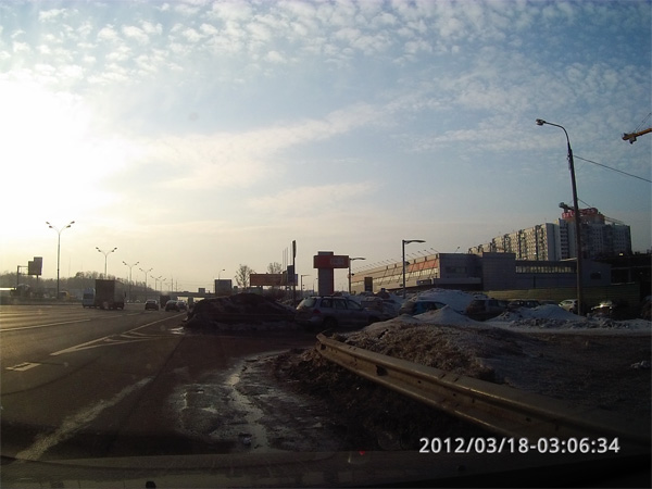 Управление продумано очень хорошо. Видеорегистратор при включении автоматически начинает запись (там можно выставлять задержку), также одной кнопкой запись включается или выключается, другой кнопкой в процессе съемки можно делать фото - вот, например, фото, сделанное во время съемки (кликабельно).