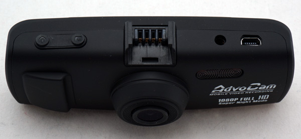Верхний торец - кнопки "Включение" и "Фото", слот посадки в кронштейн и питания, AV-порт, порт miniUSB.