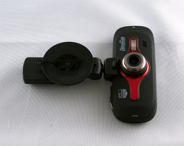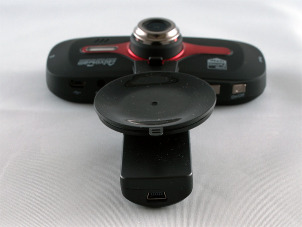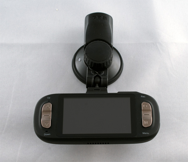 Питание подводится к колодке с присоской, в которой также размещен модуль GPS, а видеорегистратор просто надевается на колодку как на док-станцию. К колодке устройство крепится на простом шарнирном сочленении и при необходимости видеорегистратор можно разворачивать в разные стороны и даже направлять его камеру внутрь салона - ну, например, чтобы записать вашу беседу с гаишником.