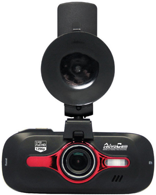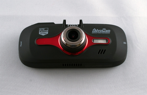 На передней панели сделана эффектная металлическая красная вставка. (Есть у AdvoCam модели подобных видеорегистраторов с голубой вставкой, но они попроще по характеристикам.) Оно, конечно, особо ни на что не влияет, потому что находится на лицевой части видеорегистратора, но все-таки приятно, когда устройство выглядит не безликой черной коробочкой, а имеет определенное "лицо".
