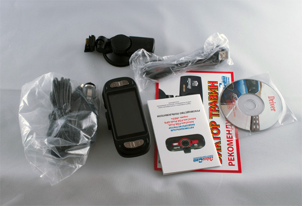 Внутри: видеорегистратор, крепление на лобовое стекло, зарядка от прикуривателя, руководство пользователя, карта памяти microSD 4Gb, диск с ПО, USB-кабель.