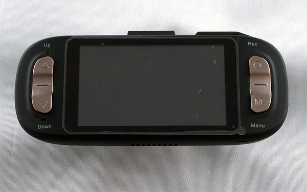 Видеорегистратор выполнен в форме вытянутого параллелепипеда, покрытого пластиком Soft Touch.