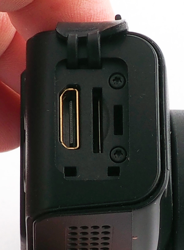 Правый торец: выход miniHDMI, второй слот для карты памяти. (Да-да, тут два слота, и это очень даже здорово.) Порты на обоих торцах закрываются плотной резиновой заглушкой.
