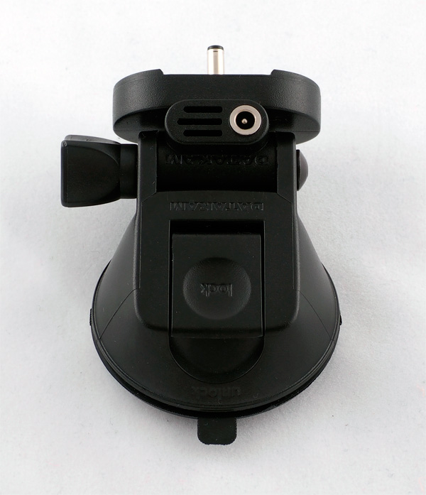 Держатель для стекла с присоской. На фото виден вход для адаптера питания. На видеорегистратор питание подается через специальный контакт, который установлен на магнитной площадке.