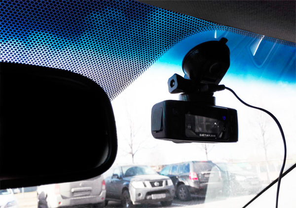 Вот видеорегистратор, установленный на стекло.