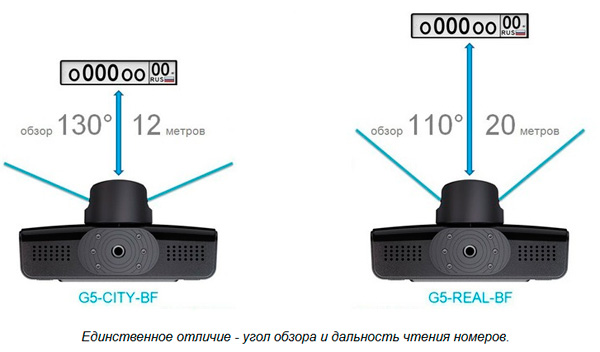 В настоящий момент на рынке присутствует две модели топовых  видеорегистраторов этой фирмы серии G5 - это DATAKAM G5 REAL и DATAKAM G5 CITY. Отличаются они только углами обзора: модель REAL - в основном предназначенная для трассы - имеет угол в 130 градусов по диагонали (110 по горизонтали) и там дальность читаемости номеров впереди идущих машин - 20 метров, а модель CITY, предназначенная для города, имеет угол в 170 градусов по диагонали (130 по горизонтали, и у нее дальность читаемости номеров - 12 метров.