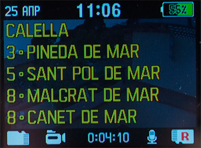 Режим 1: километраж, расстояние до центра города, скорость, текущий населенный пункт, ближайшие населенные пункты. Причем населенные пункты правильно показывает по всему миру - я специально в Испании проверял: все четко показывает.
