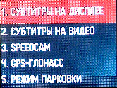 Когда видеорегистратор не в режиме записи, при нажатии соответствующей кнопки появляется следующее меню.